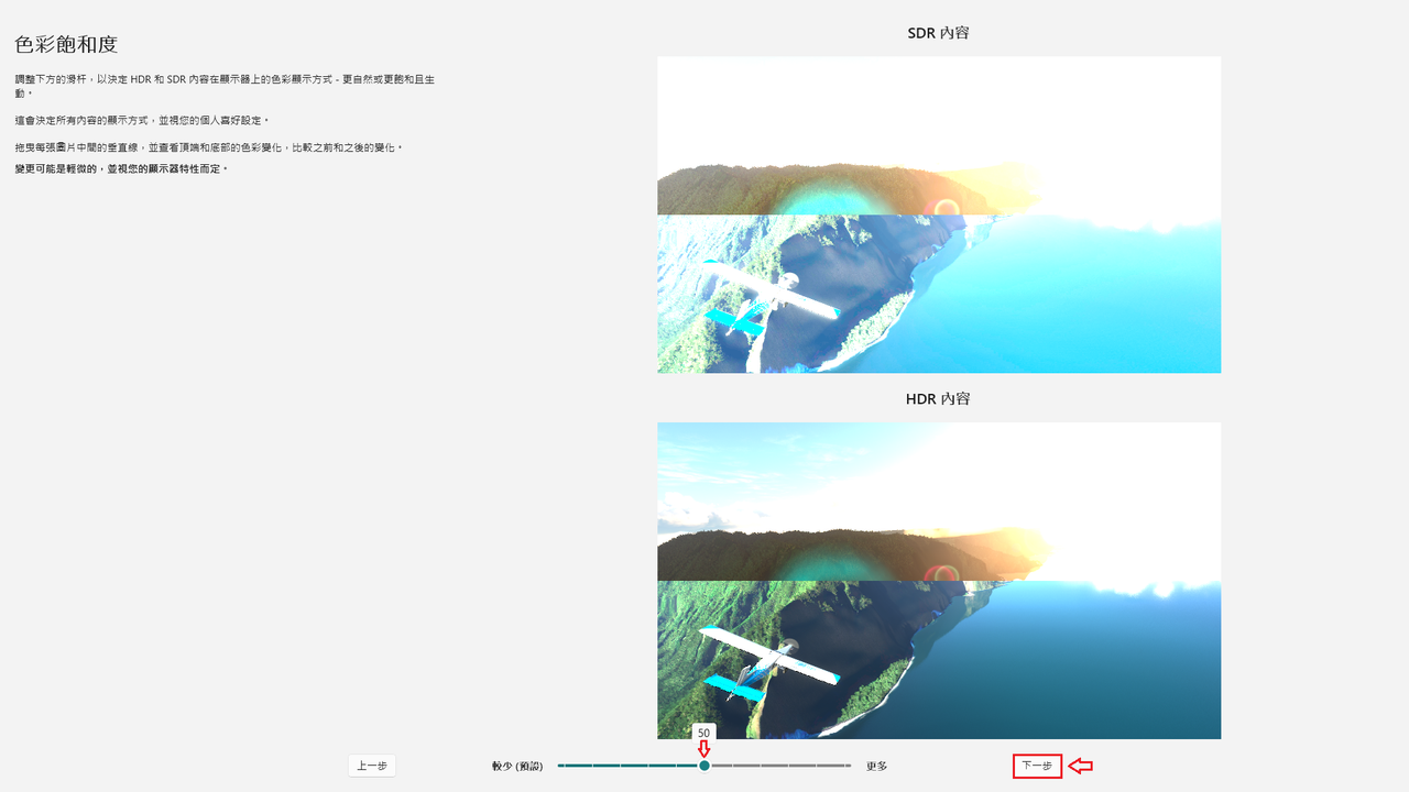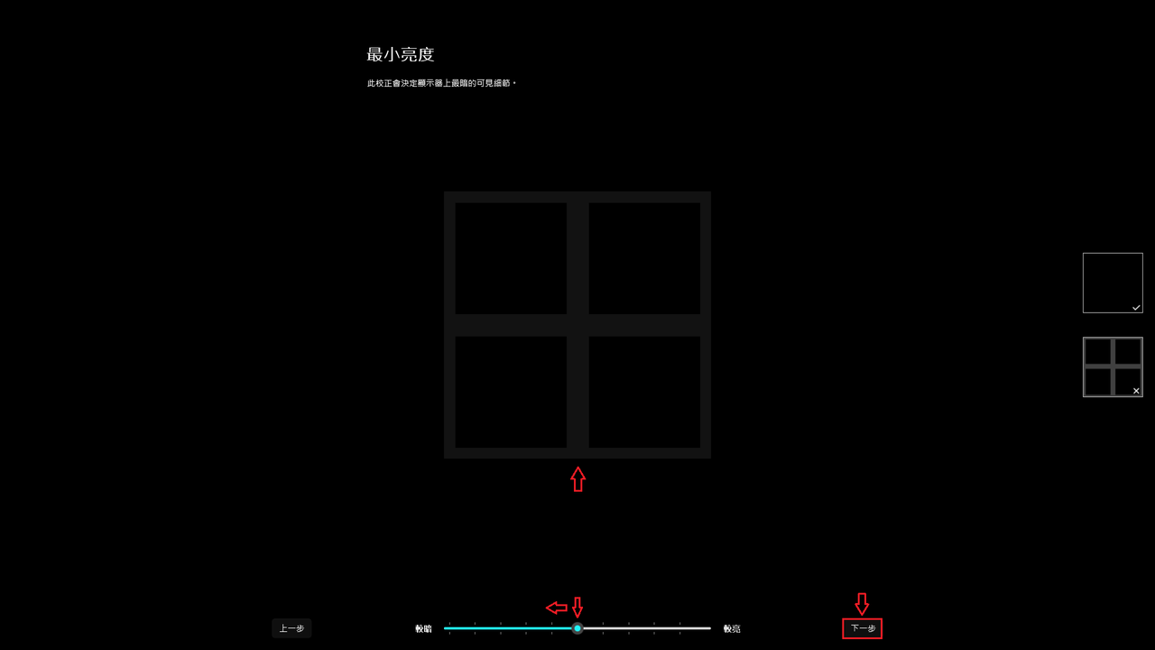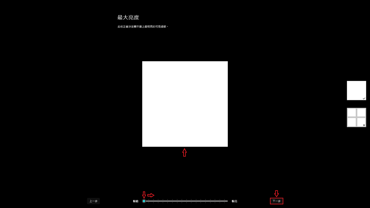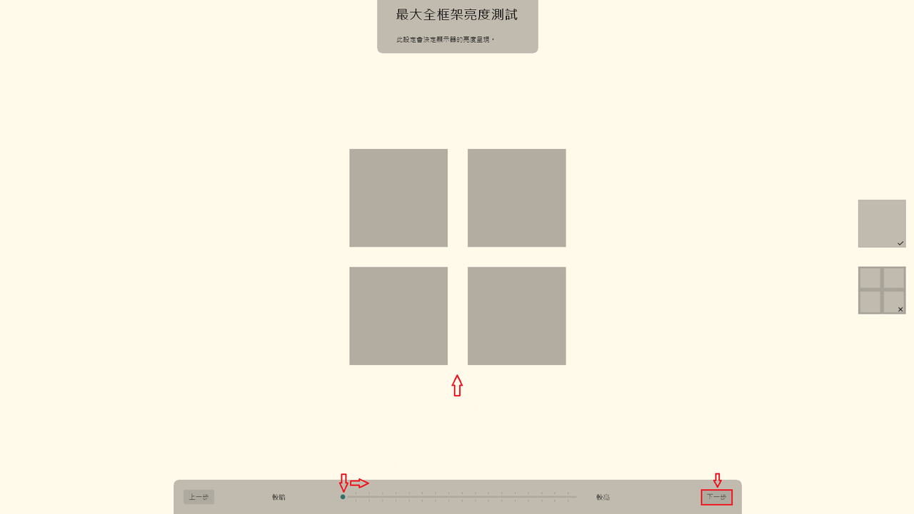 5. 將拉桿向左拖曳及調整,直到上方的框框看不見為止,接著再按[下一步]鈕。(建議直接設定為0即可)